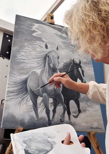 Mijn stijl noem ik realistisch met een vleugje nostalgie en romantiek. Ik schilder met acryl, olieverf en aquarel en gebruik liefst vrolijke, heldere kleuren. De natuur is mijn grote inspiratiebron, ik schilder graag dieren en ook mensen als onderdeel van het landschap.